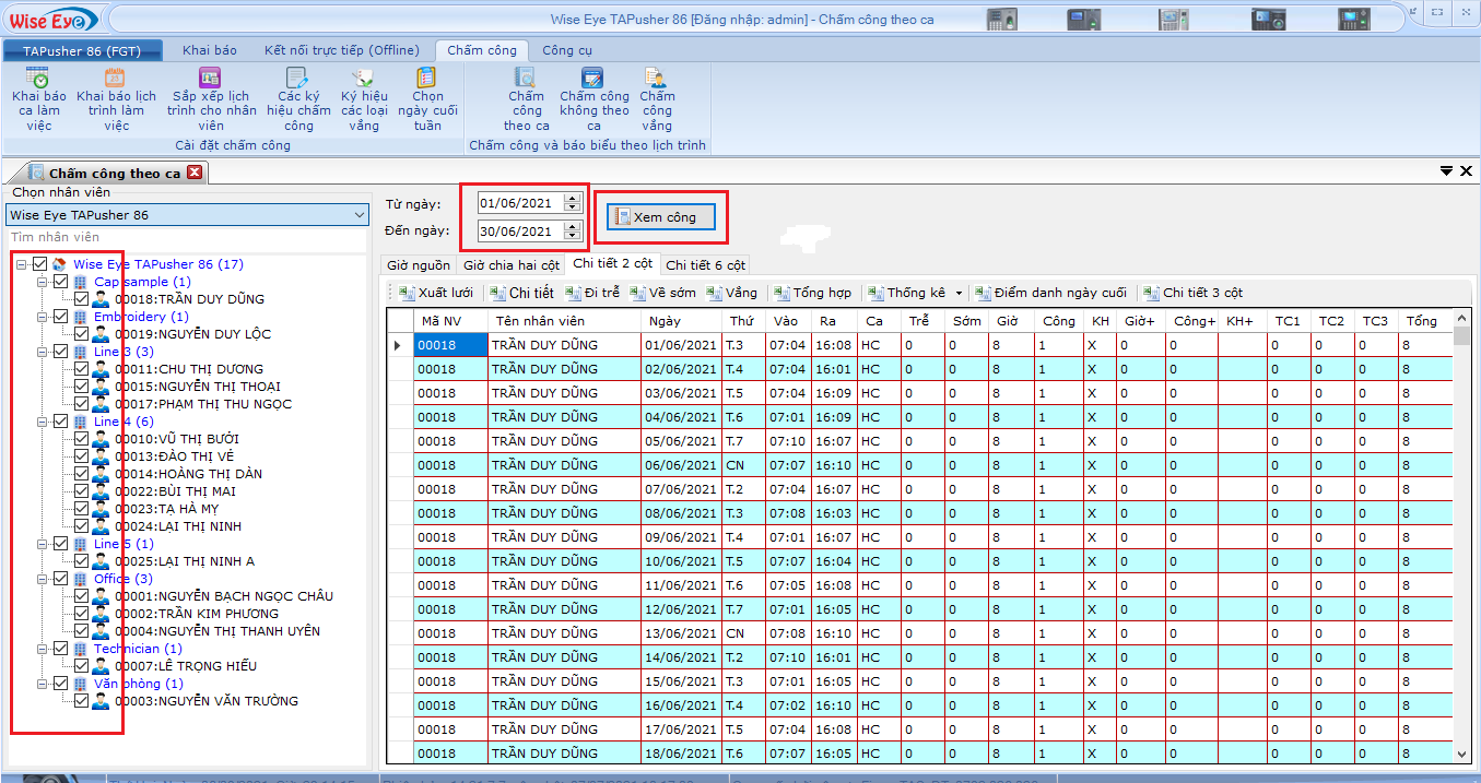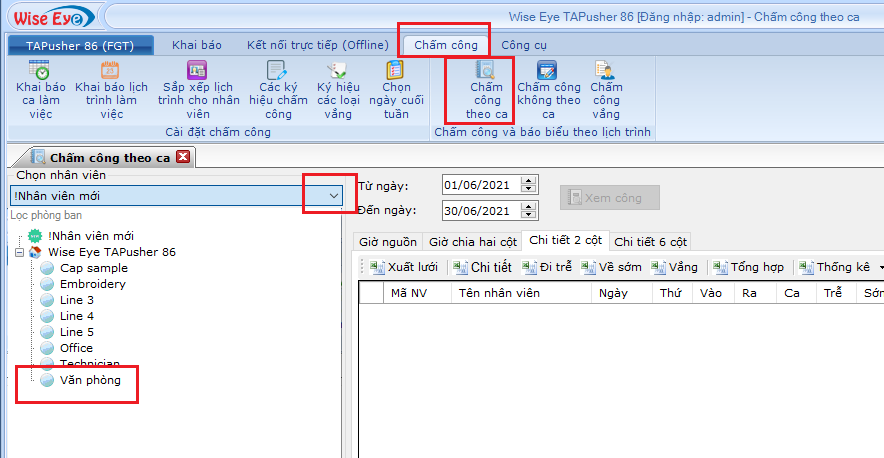 Bước 3: Bấm vào chọn phòng ban để hiện ra nhân viên