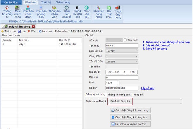 =>Máy chấm công bắt buộc phải khai báo và đăng ký trong phần mềm mới sử dụng được USB