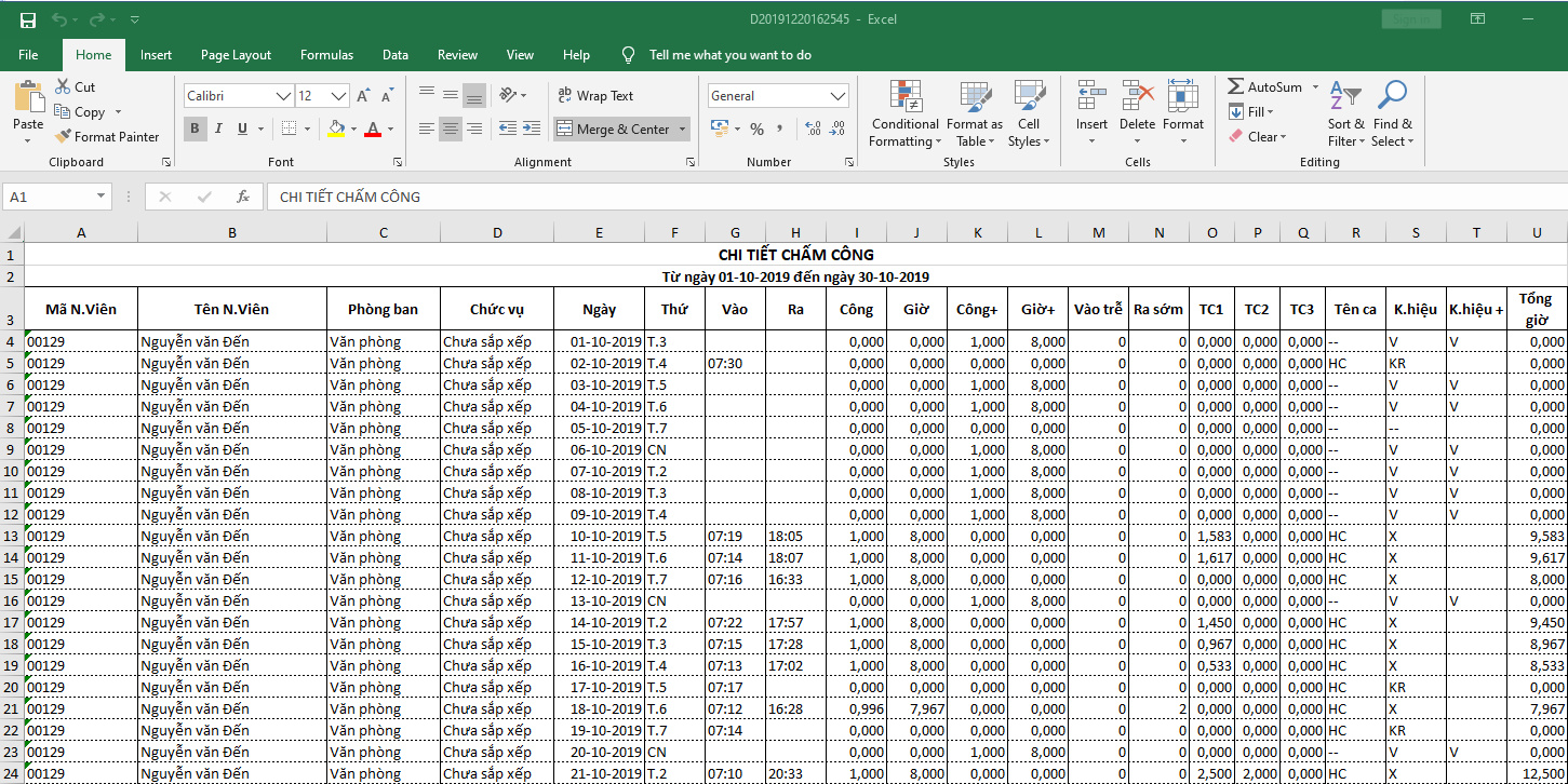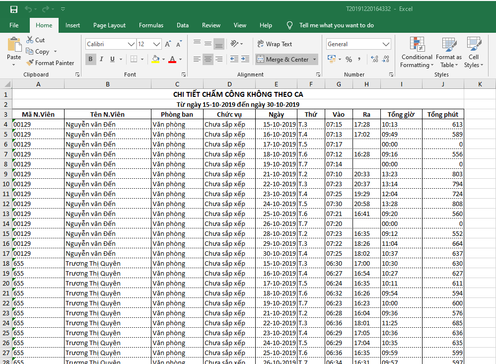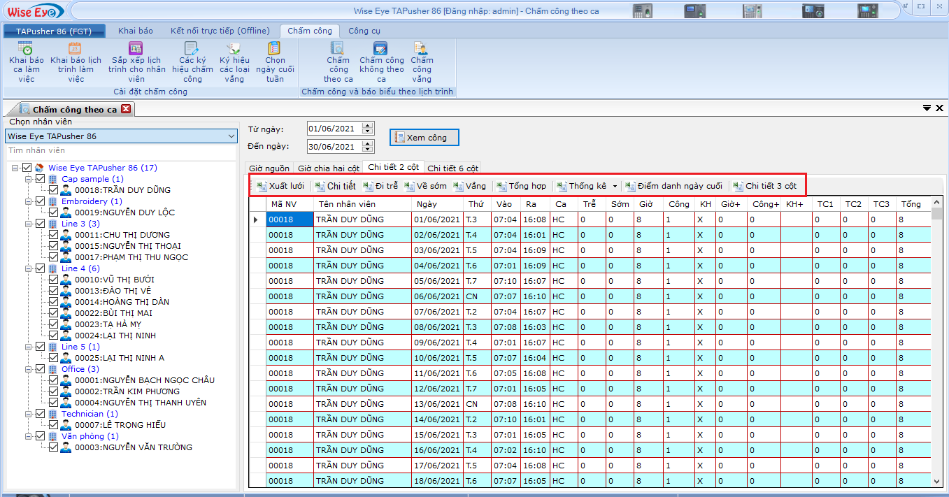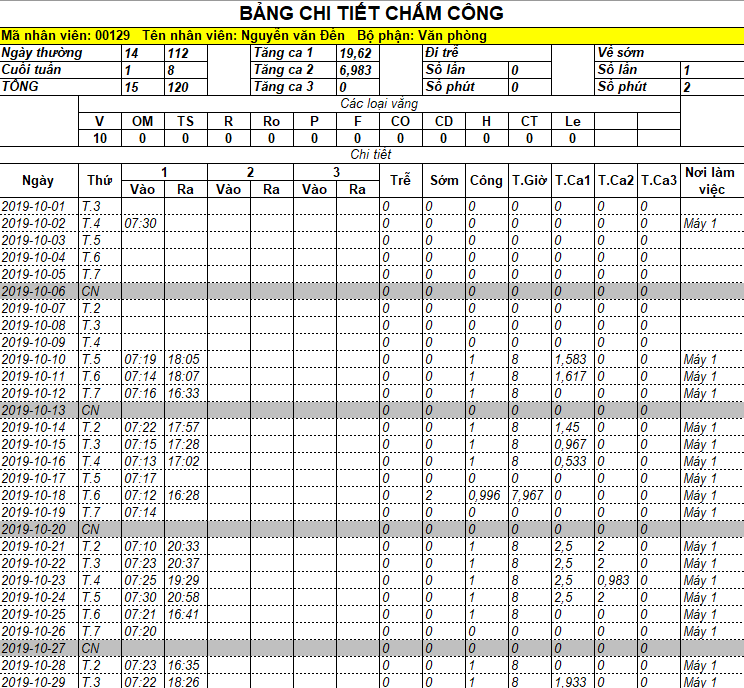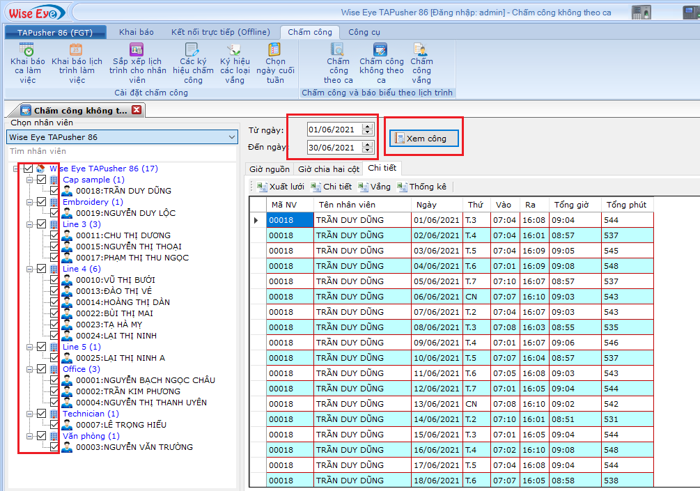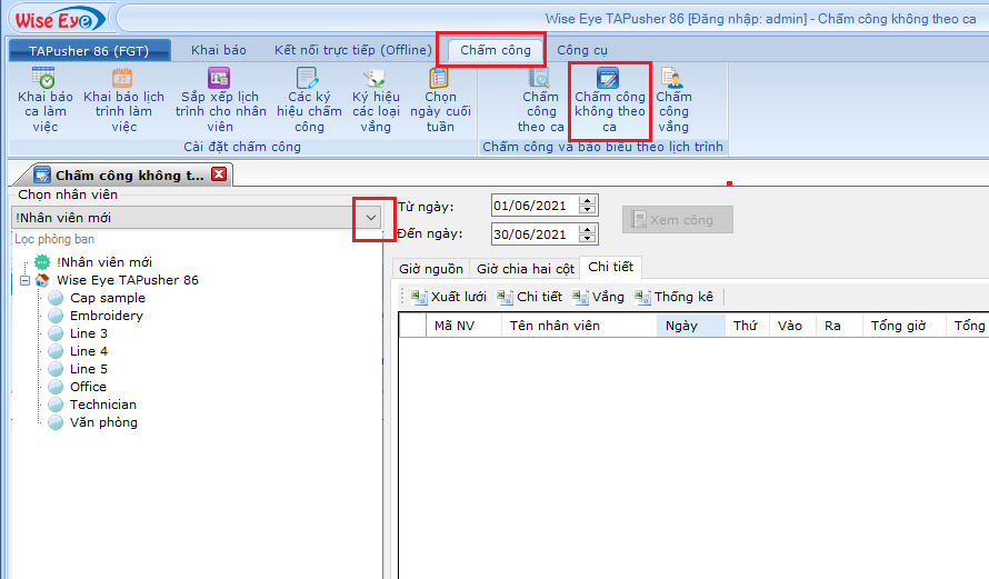 - Bước 3: Bấm vào chọn phòng ban để hiện ra nhân viên