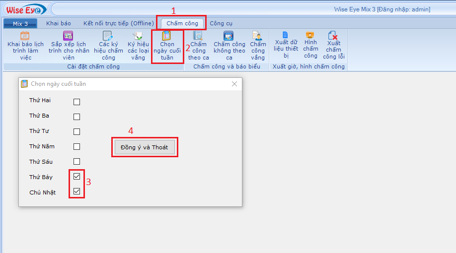 3) Tích vào ngày muốn chọn là ngày cuối tuần