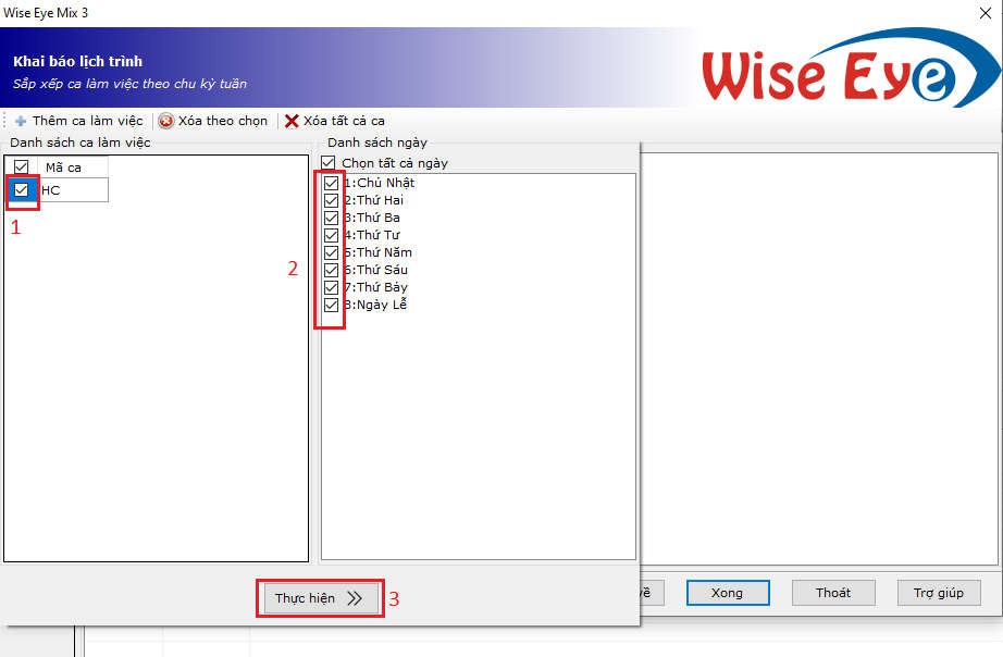 =>Bấm xong để kết thúc tạo lịch trình làm việc