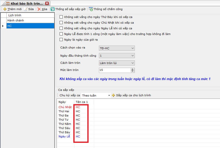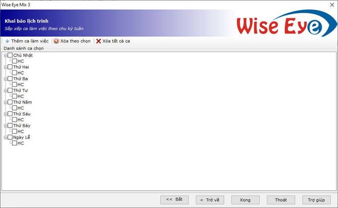 =>Bấm kế tiếp để xếp ca cho lịch trình