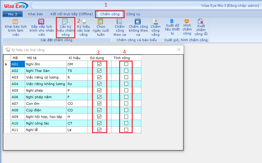 - 4) Tích vào chữ tính công nếu muốn khi khai báo loại vắng đó được tính công