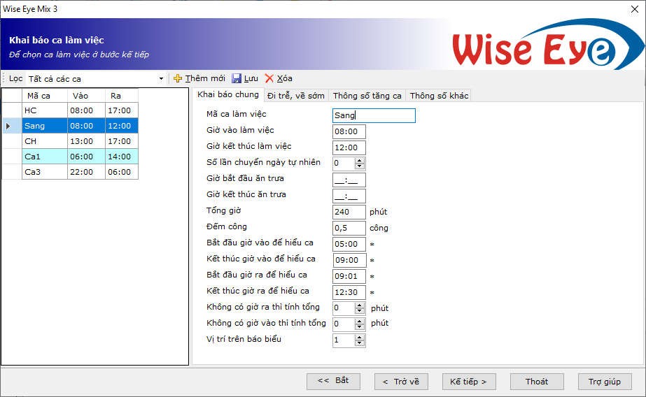 Các ca làm việc thường gặp