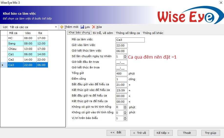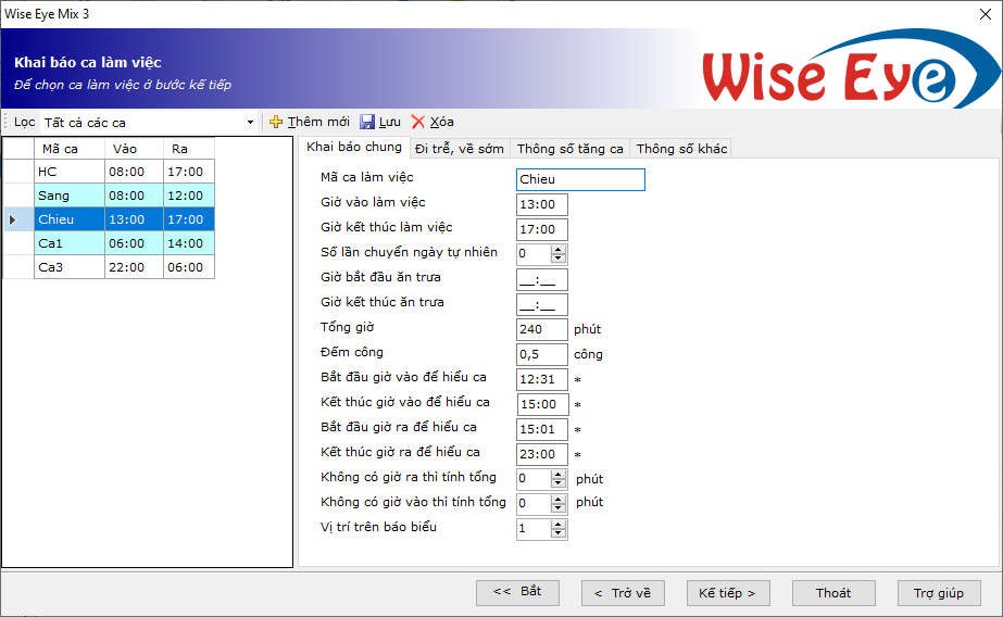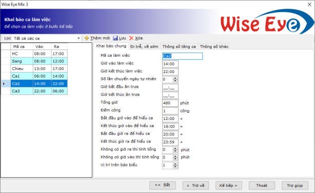 =>Bấm kế tiếp để qua chon chu kỳ sắp xếp ca làm việc (Chọn chu kỳ theo tuần , tháng năm( mặc định là theo tuần
