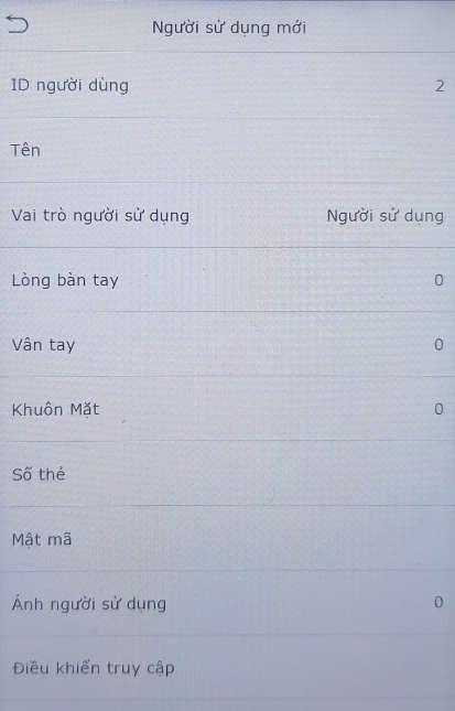 - Bấm vào dòng Vân Tay để đăng ký dấu vân tay