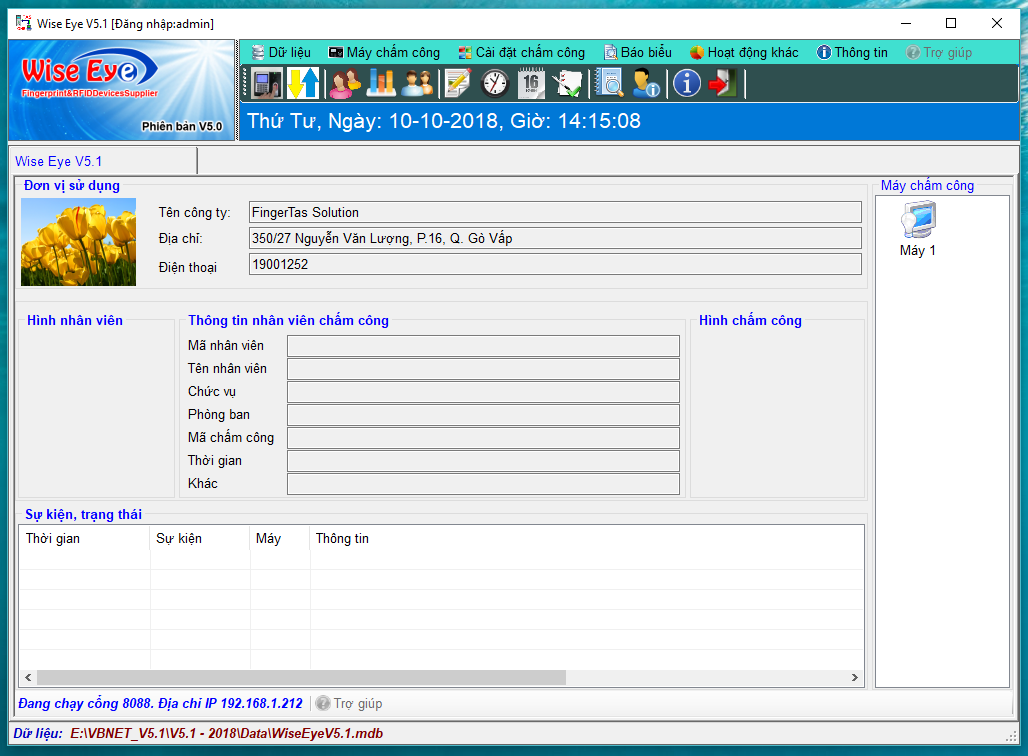 Wise Eye quản lý dữ liệu thẻ, dữ liệu vân tay của nhân viên. Chúng ta có thể tải dữ liệu vân tay, dữ liệu thẻ về máy tính. Dữ liệu này hoàn toàn được tải lên máy chấm công trong trường hợp thay đổi máy hoặc cần chuyển dữ liệu đến các máy khác cùng loại đối với một công ty, nhà xưởng sử dùng nhiều máy chấm công.
