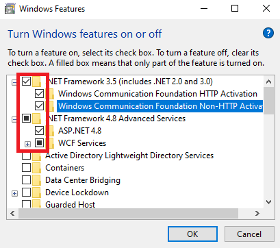 - Chọn hết tất cả những phần .NET FrameWork mà bạn muốn sử dụng rồi bấm OK