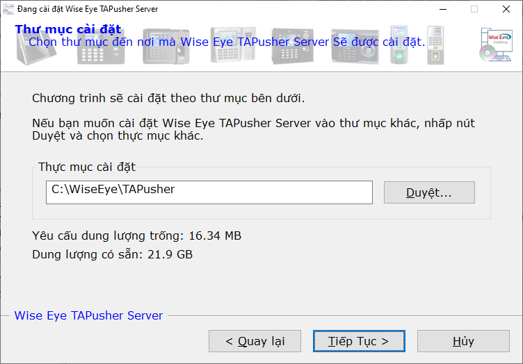 2) Cài đặt phần mềm WiseEyeTAPusherServer