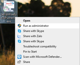 Bước 1: Nhấn chuột phải vào file setup SetUpWiseEyeTAPusher86.exe à chọn Run as administrator