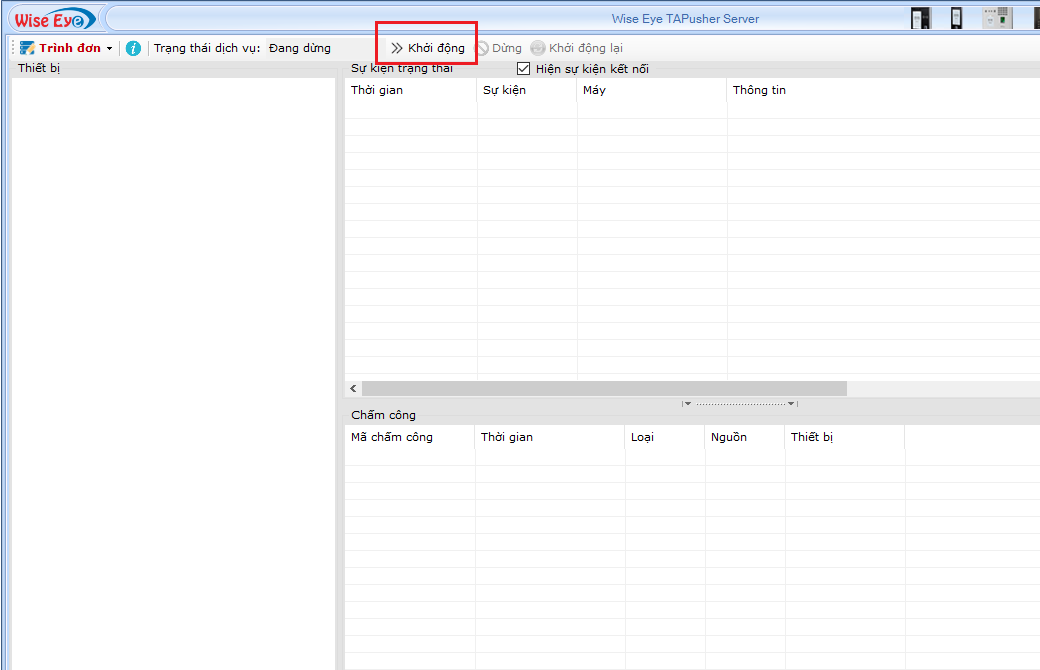 - Mở phần mềm lên bấm vào chữ KHỞI ĐỘNG để mở dịch vụ lên