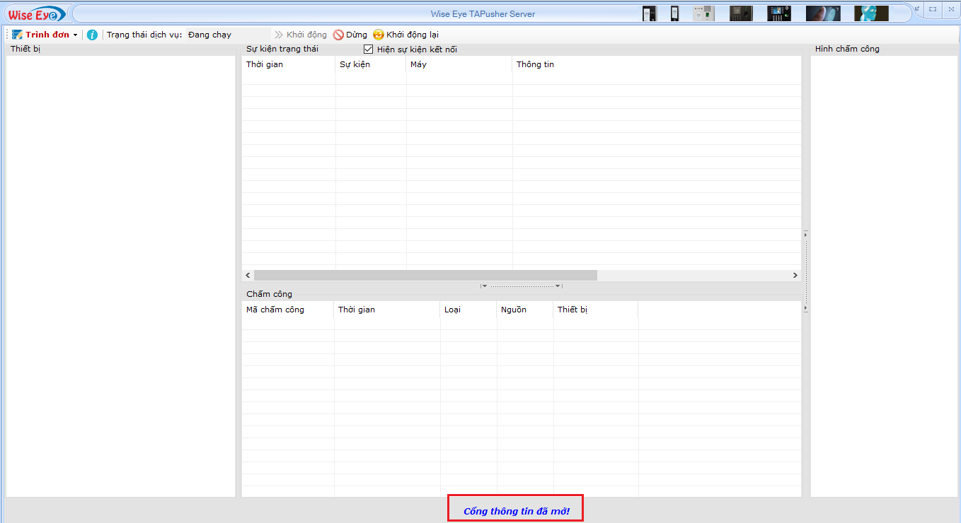 - Sau khi khai báo các thông số thành công thì số seri của máy chấm công sẽ lập tức chạy về Wise Eye TAPusher Server giống như hình sau