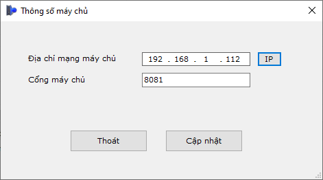 + Khi bấm vào chữ IP (3) sẽ hiện ra địa chỉ Ip máy chủ (là IP của máy tính đang cài phần mềm)