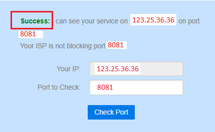 - Sau khi mở trên Router thì kiểm tra port đã mở: vô trang web https://canyouseeme.org/ nhập port đã mở bấm check port