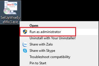 Bước 1: Nhấn chuột phải vao file setup Wise Eye Mix 3.exe chọn Run as administrator