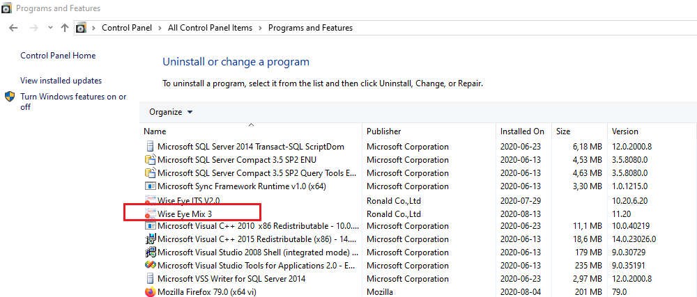 Vào menu Start > Chọn Control Panel > Programs and Features : bấm biểu tượng WiseEyeOn39Plus