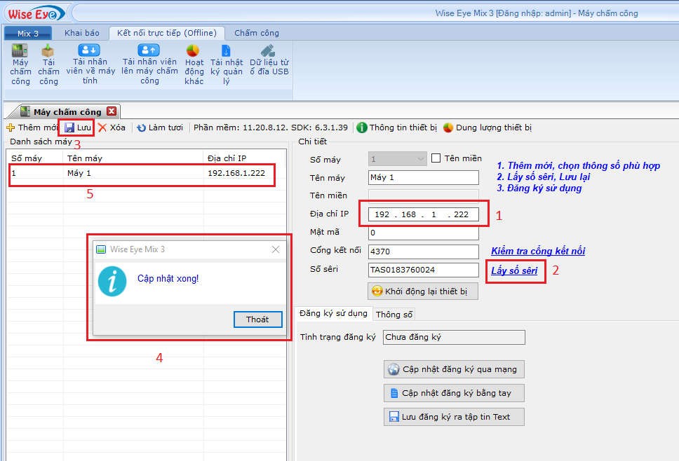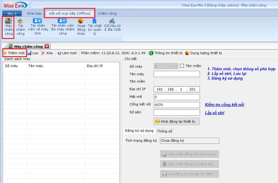 • Bước 1: Nhập địa chỉ IP của máy chấm công