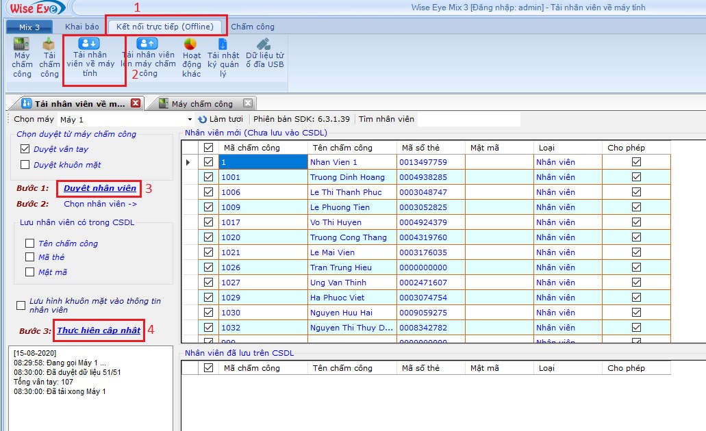 Chọn biểu tượng : tải nhân viên về máy tính => (3) Bấm duyệt nhân viên