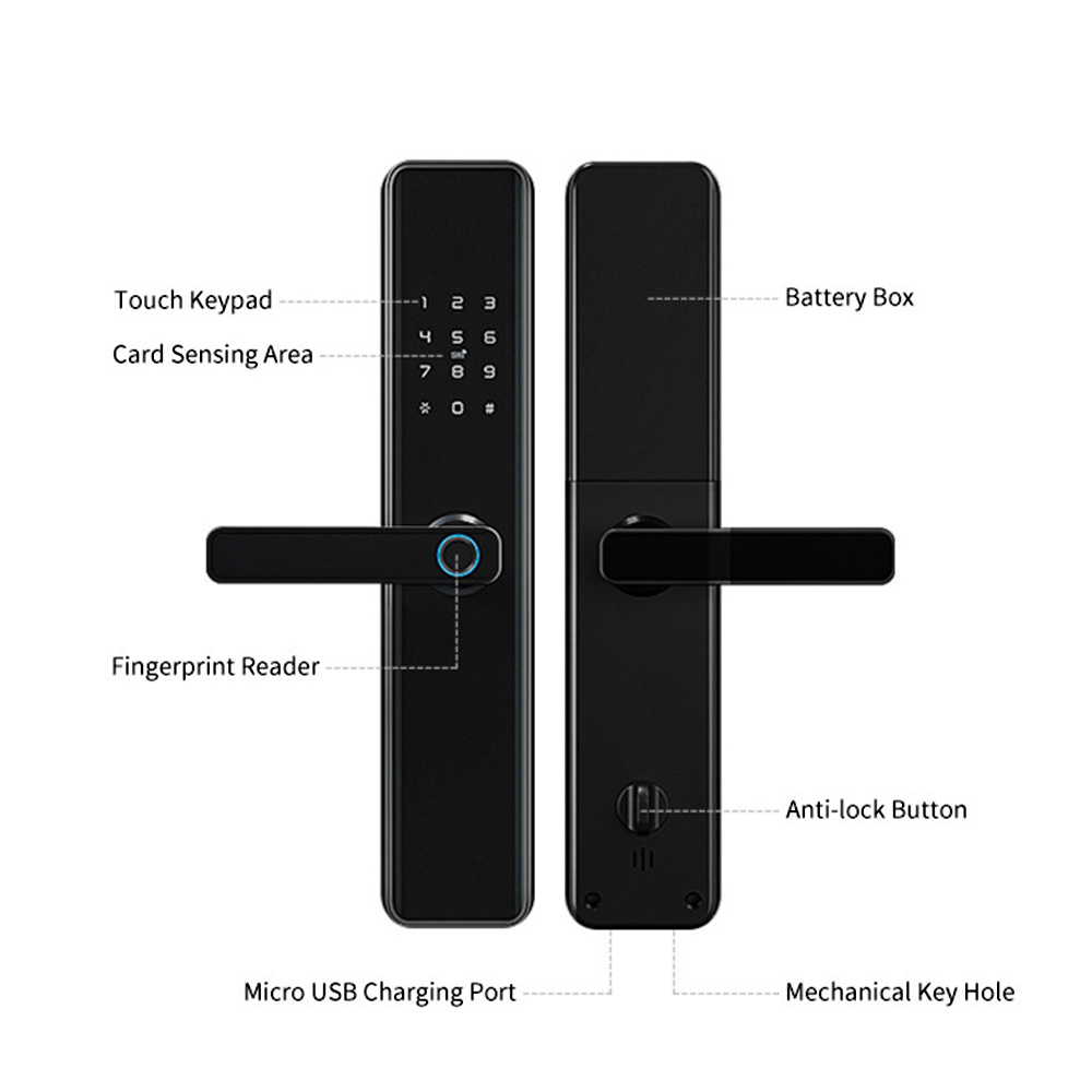 Phương pháp mở khóa: ỨNG DỤNG, Vân tay, Thẻ M1, Mật khẩu, Vòng đeo tay hoặc Chìa khóa