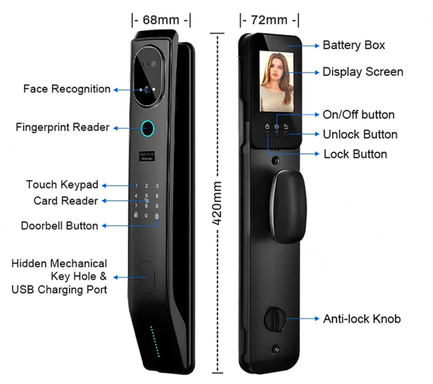 Phương pháp mở khóa: ỨNG DỤNG, Vân tay,Khuôn mặt, Thẻ M1, Mật khẩu