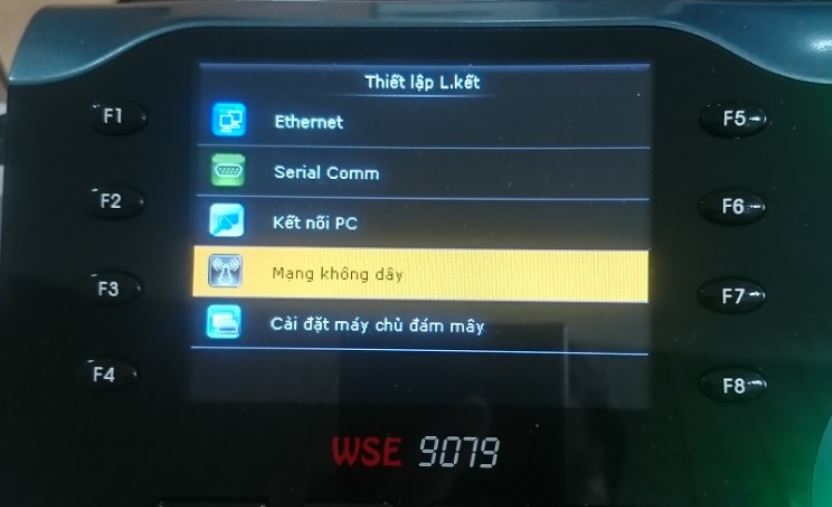 Để kết nối với điểm truy cập Wifi thì chúng ra vào Danh Mục Chính -> Thiết Lập L.Kết -> Mạng không dây. Rồi xem danh sách chọn Wifi cần kết nối.