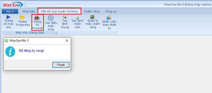 Vào (1) Kết nối trực tuyến(online) =? bấm đăng ký Firewall