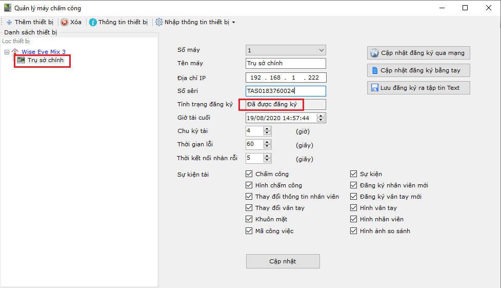 Đăng ký máy chấm công