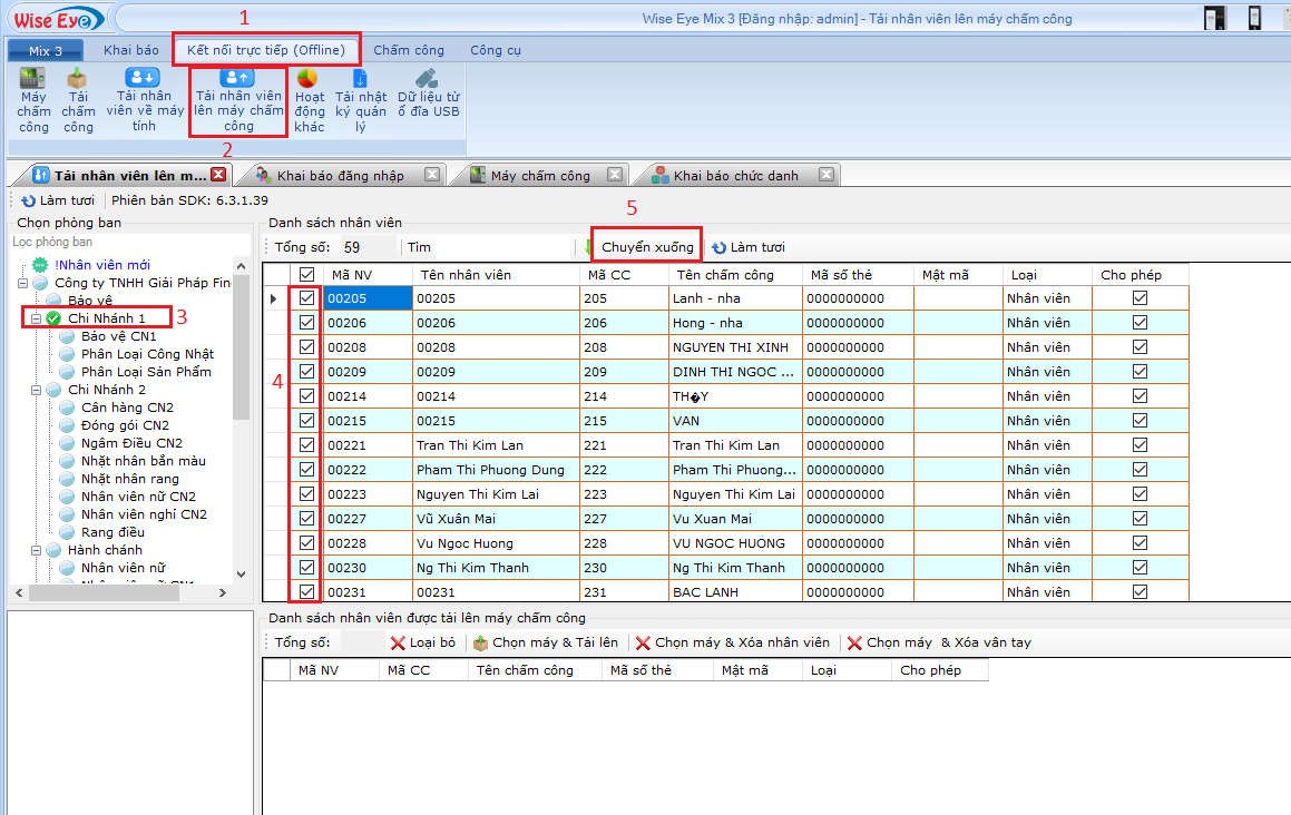 • Chọn tải nhân viên lên máy chấm công