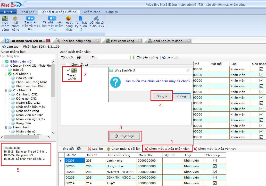 • Bấm chọn máy và xóa nhân viên